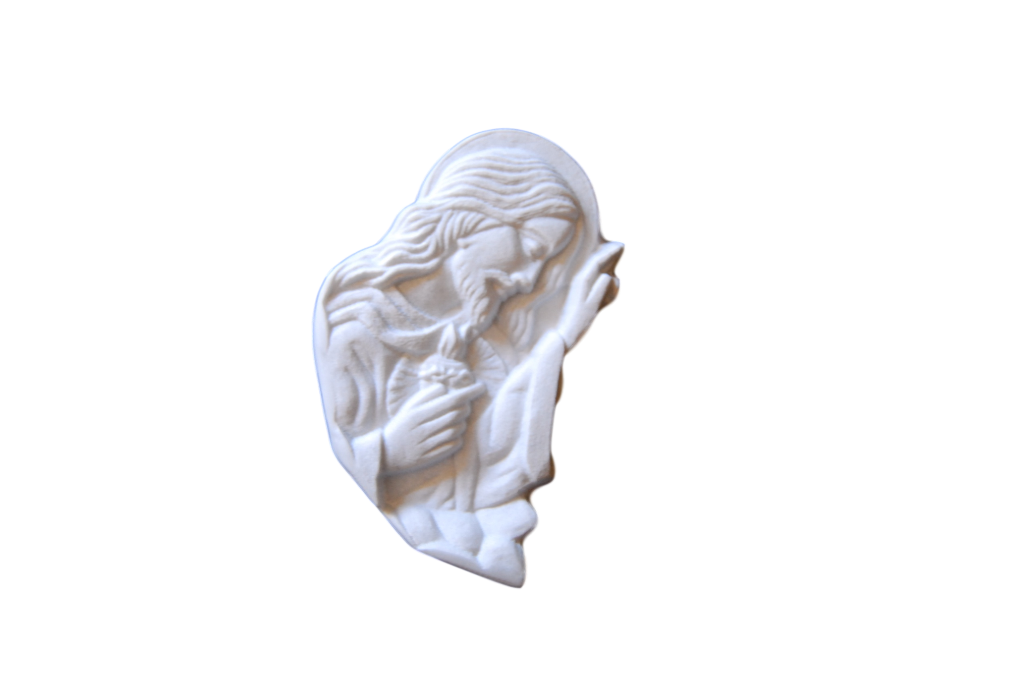 Marble sculpture (bas-relief) depicting the Sacred Heart of Jesus made of natural White Carrara marble. If you want a sculpture with dimensions other than those proposed by us, you can send an e-mail by clicking on the envelope at the bottom right of the screen describing the dimensions you want, we will reply by proposing the cost of the sculpture.